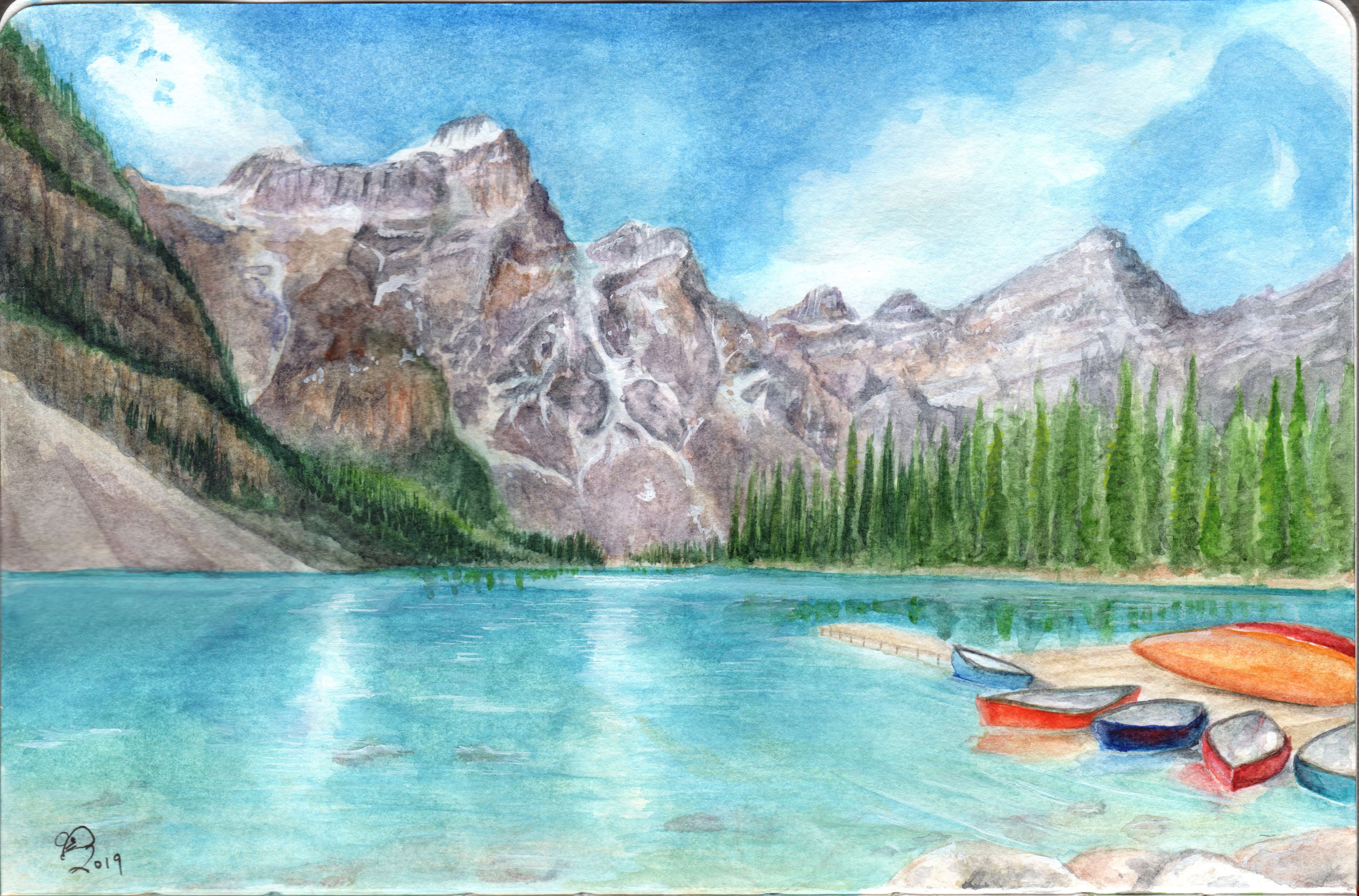 Watercolor travel journal I did during and after (from my photographs) my trip to Banff last year. Scenery there was just gorgeous and pristine!